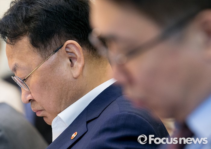 (서울=포커스뉴스) 13일 오전 서울 여의도 국회 귀빈식당에서 열린 더불어민주당 저출산 해소를 위한 국민연금 공공투자 특별위원회 1차 정책협의회에 참석한 유일호 경제부총리 겸 기획재정부 장관이 의원들의 발언을 듣고 있다.