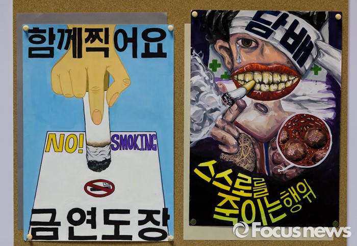 (서울=포커스뉴스) 13일 오전 서울 송파구 잠실학생체육관에서 열린 학교 흡연예방 어울림 축제에서 학생들이 만든 금연 홍보물이 전시돼 있다.