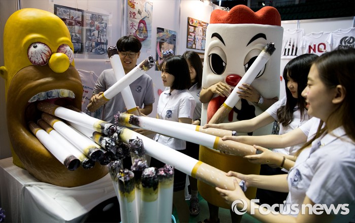 (서울=포커스뉴스) 13일 오전 서울 송파구 잠실학생체육관에서 열린 학교 흡연예방 어울림 축제에서 학생들이 금연 홍보물을 살펴보고 있다.