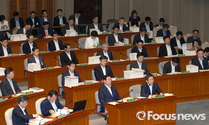 (서울=포커스뉴스) 13일 오전 서울 여의도 국회에서 열린 예산결산특별위원회 전체회의에 참석한 황교안 국무총리가 의원들의 질의에 답하고 있다.