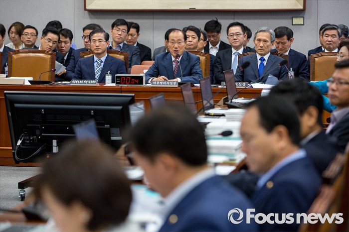 (서울=포커스뉴스) 이원종(가운데) 대통령비서실 비서실장이 13일 오전 서울 여의도 국회에서 열린 '운영위원회 전체회의'에 참석해 질의응답 하고 있다.