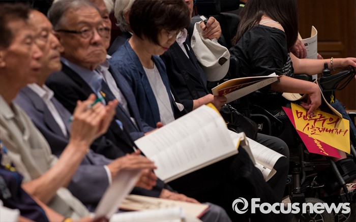 (서울=포커스뉴스) 13일 오전 서울 중구 프레스센터에서 열린 '한상균을 석방하라, 민주주의 살려내자' 7.13 시국회의에 참석한 시국선언인단이 시국선언문을 읽고 있다.