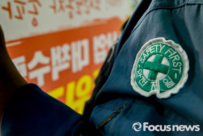 (서울=포커스뉴스) 13일 오전 서울 여의도 국회 정론관에서 조선업종노조연대 등 관계자들이 일방적 구조조정에 반대하는 총파업 선언 기자회견을 하고 있다.