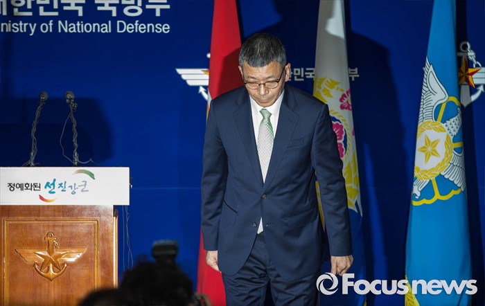 (서울=포커스뉴스) 류제승 국방정책실장이 13일 오후 서울 용산구 국방부 브리핑실에서 열린 사드 배치 지역 공식 발표를 위해 브리핑실로 입장, 인사를 하고 있다. 이날 한미 군 당국은 경북 성주에 사드를 배치한다고 발표했다.