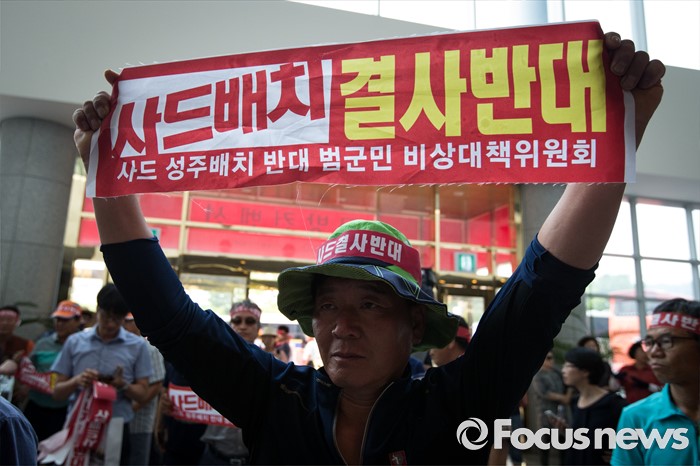 (서울=포커스뉴스) 13일 오후 서울 용산구 국방부를 찾은 성주 군수와 군민들이 사드배치 반대 성명서를 전달하기 위해 국방컨벤션을 들어서고 있다. 이날 국방부에서 주한미군 고고도 미사일 방어 체계 사드(THAAD) 배치 지역을 성주로 결정하고 공식 발표했다.