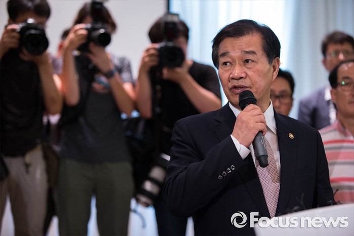 (서울=포커스뉴스) 13일 오후 황인무 국방부 차관이 경북 성주에 사드 배치를 확정한 국방부의 공식 발표 후 서울로 상경, 서울 용산 국방부 컨벤션센터를 항의 방문중인 김항곤 성주군 군수, 사회단체장 및 군민을 찾아 대화를 나누고 있다.