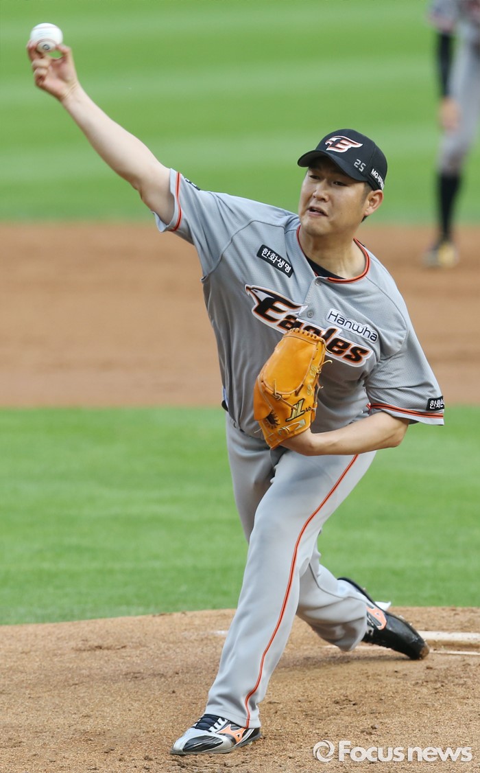 (서울=포커스뉴스) 13일 서울 잠실구장에서 열린 2016 프로야구 한화-LG 경기에서 1회말 한화 선발투수 송은범이 투구하고 있다.