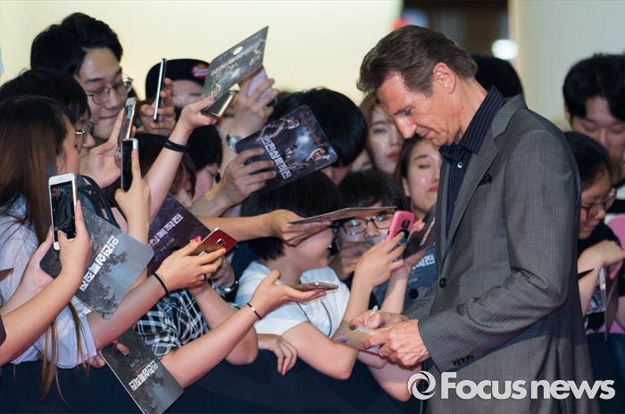 △ 팬들에게 사인하는 리암 니슨