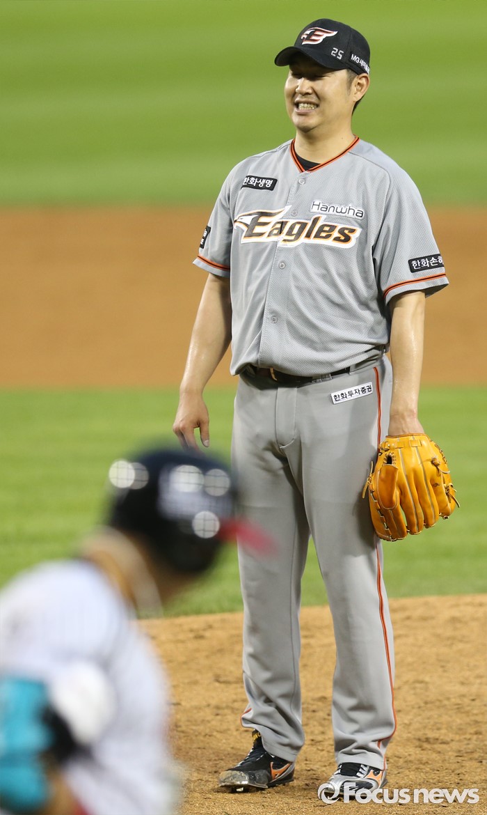 (서울=포커스뉴스) 13일 서울 잠실구장에서 열린 2016 프로야구 한화-LG 경기 4회말 1사 1,2루에서 한화 투수 송은범이 LG 이병규를 볼넷으로 내보내며 아쉬워하고 있다.