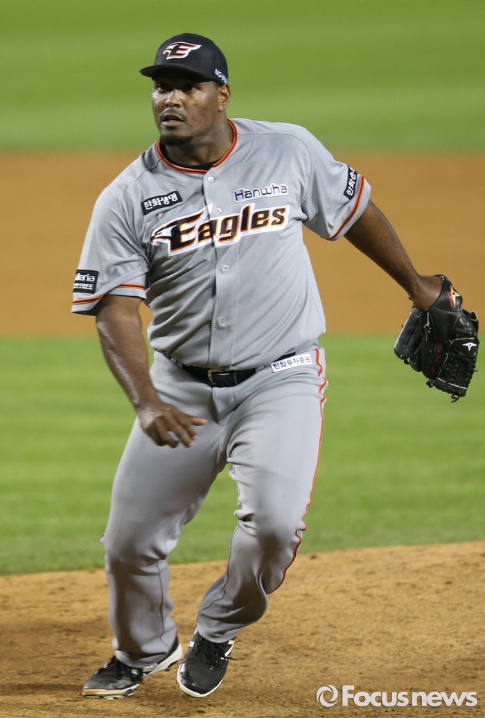 (서울=포커스뉴스) 13일 서울 잠실구장에서 열린 2016 프로야구 한화-LG 경기 7회말 무사 1루에서 등판한 한화 투수 카스티요가 LG 이천웅의 번트 타구를 잡으려 뛰고 있다.