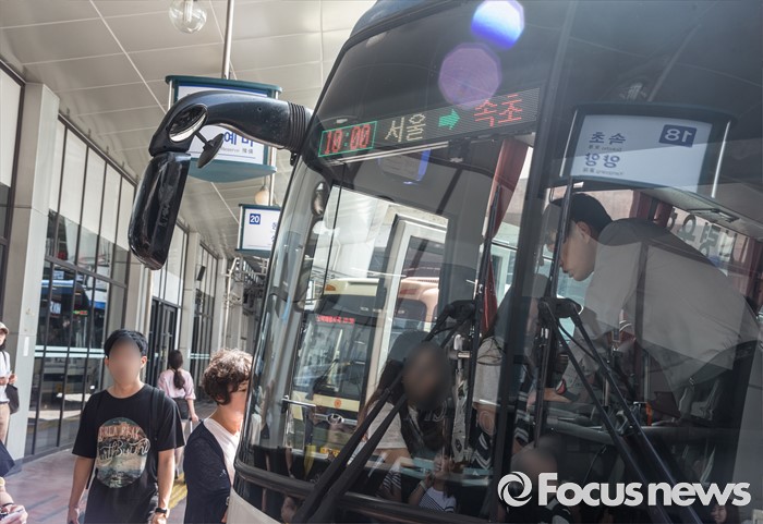 (서울=포커스뉴스) 14일 오전 서울 서초구 고속버스터미널에서 승객들이 강원도 속초행 버스를 탑승하고 있다.