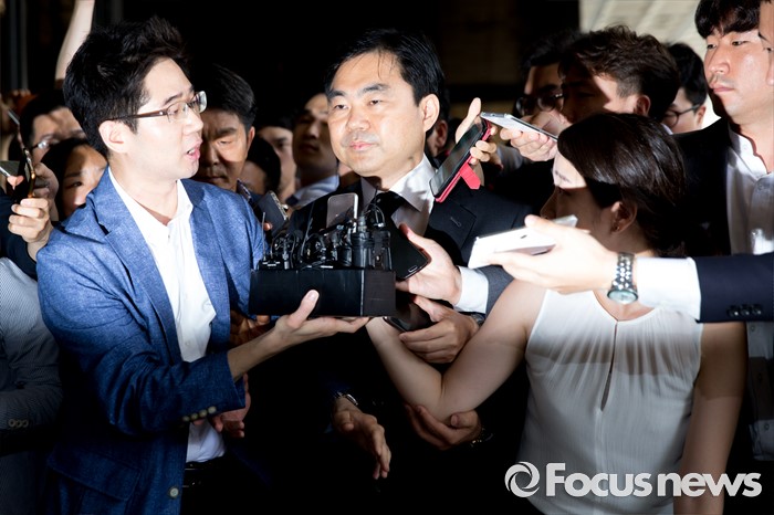 (서울=포커스뉴스) '주식 대박' 논란에 휩싸인 진경준 검사장이 14일 오전 서울 서초구 서울중앙지방검찰청으로 출석하고 있다.