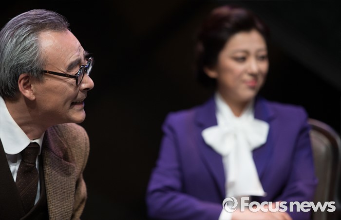 (서울=포커스뉴스) 14일 오후 서울 종로구 동숭아트센터 소극장에서 열린 연극 '코펜하겐' 프레스콜에 참여한 배우 남명렬(왼쪽)이 주요장면을 시연하고 있다.
