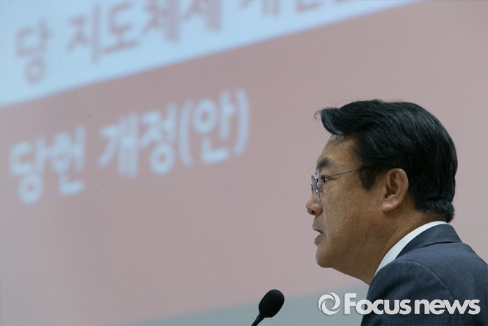 (서울=포커스뉴스) 14일 오후 서울 여의도 국회 의원회관에서 열린 새누리당 전국위원회에 참석한 정진석 원내대표가 인사말을 하고 있다.