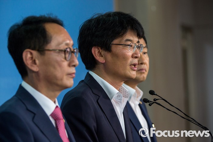 (서울=포커스뉴스) 박완주(가운데) 더불어민주당 원내수석부대표가 14일 오후 서울 여의도 국회에서 여야3당 원내수석부대표 합의사항을 발표하고 있다. 이날 여야3당은 사드(고고도미사일방어체계) 국내 배치 결정에 따른 논한과 관련해 다음주 긴급 현안 질의를 위한 국회 본회의를 개최하는데 합의 했다고 밝혔다.