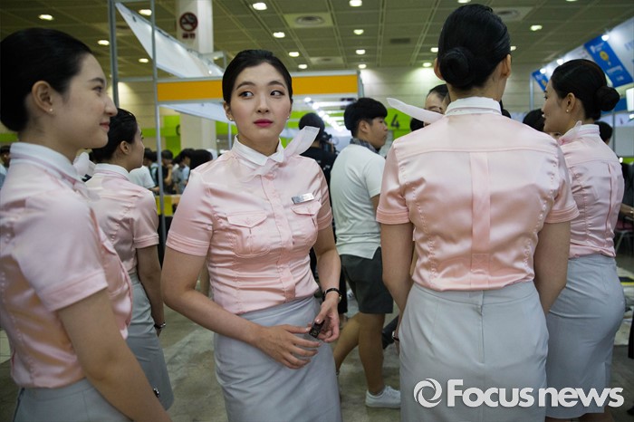 (서울=포커스뉴스) 14일 오후 서울 강남구 코엑스에서 열린 전문대학 엑스포에서 항공운항과 학생들이 행사장을 둘러보고 있다.