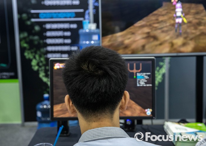 (서울=포커스뉴스) 14일 오후 서울 강남구 코엑스에서 열린 전문대학 엑스포에 참가한 한 고등학생이 한 대학 부스에서 마련한 컴퓨터 게임을 체험하고 있다.
