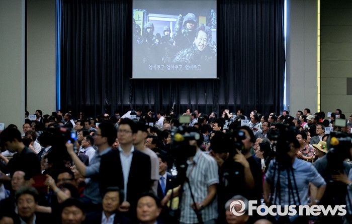 (서울=포커스뉴스) 14일 오후 서울 영등포구 그랜드컨벤션센터에서 열린 김무성 새누리당 전 대표 취임 2주년 행사에 참석한 지지자들이 김 전 대표의 영상을 시청하고 있다.