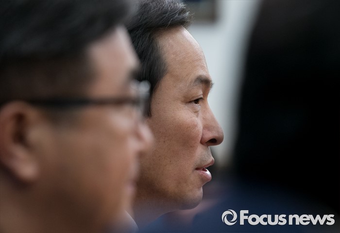 (서울=포커스뉴스) 15일 오전 서울 여의도 국회에서 열린 더불어민주당 사드대책위원회의에 참석한 우상호 원내대표가 모두발언을 하고 있다.