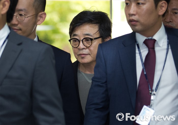 (서울=포커스뉴스) 대우조선해양 경영 비리에 연루된 이창하(가운데) 디에스온 대표가 영장실질심사를 받기 위해 15일 오전 서울중앙지법으로 들어서고 있다.
