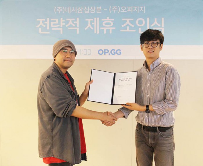 (서울=포커스뉴스) 네시삼십삼분(대표 장원상·박영호, 이하 4:33)은 PC 온라인게임 '리그오브레전드'의 대전 기록 서비스를 제공하는 국내 최대 전적 검색 사이트 오피지지(OP.GG, 대표 박천우, 최상락)와 전략적 업무 협약을 체결했다고 15일 밝혔다.
