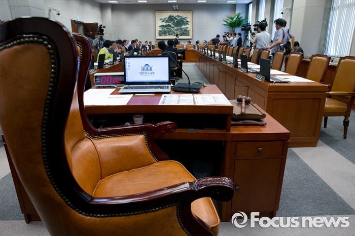 14일 환노위 전체회의에선 지난해 집행된 예비비의 절차적 적법성 문제와 올해 예비비 집행 내역 공개 여부를 두고 여야 의원들이 치열한 논쟁을 벌였다. 논쟁 중 여당 소속 의원들이 전원 퇴장한 가운데 야당 단독으로 안건을 처리했으며 이에 여당의원들은 '날치기'라고 강력 반발했다.15일 오전 서울 여의도 국회에서 예정된 운영위원회 전체회의에 새누리당 의원들이 불참해 빈 자리가 보이고 있다. 2016.07.15 박동욱 기자 국회 운영위원회 위원장인 정진석(오른쪽) 새누리당 원내대표와 새누리당 간사인 김도읍 원내수석부대표가 13일 오전 서울 여의도 국회에서 열린 '운영위원회 전체회의'에 참석해 대화 하고 있다. 2016.07.13 강진형 기자