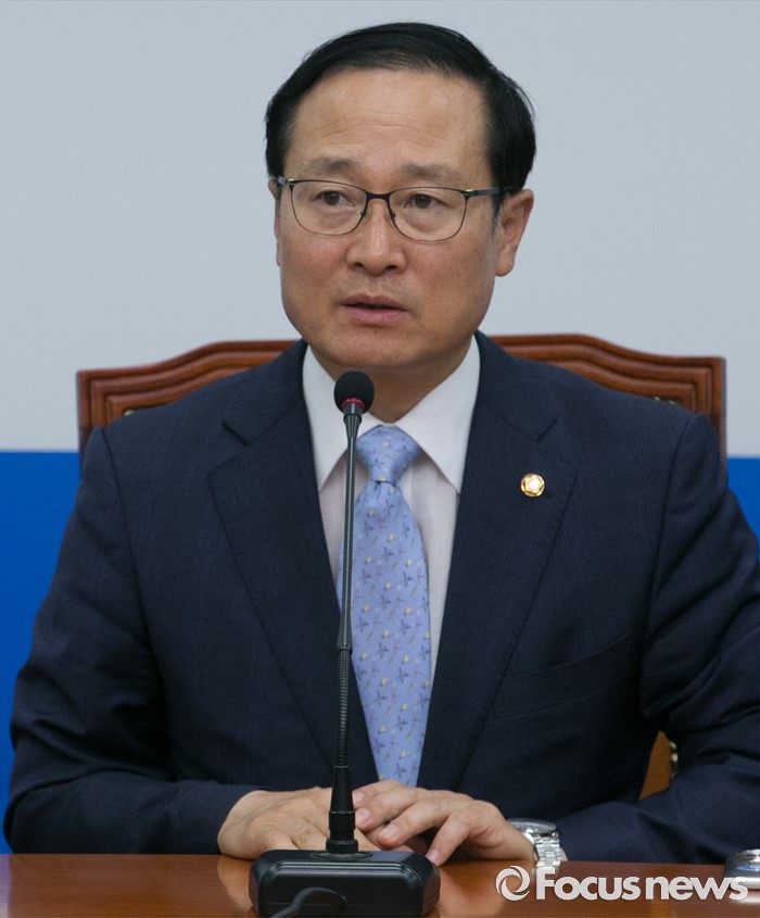(서울=포커스뉴스) 15일 오전 서울 여의도 국회에서 홍영표 국회 환경노동위원장이 결산 표결 관련 입장을 전하는 기자간담회를 하고 있다. 이날 새누리당은 더불어민주당 소속 홍 위원장이 야당 단독으로 예비비 지출안 등을 처리한 것과 관련해 위원장 사퇴를 요구하며 모든 상임위 보이콧을 선언했다.