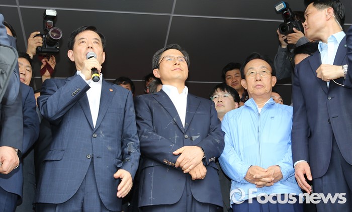 (성주=포커스뉴스) 한민구 국방부장관이 15일 오전 경북 성주군청광장에서 사드(THAAD, 고고도미사일방어체계) 배치에 대한 주민설명회에서 사드배치 관련 설명을 하고 있다.