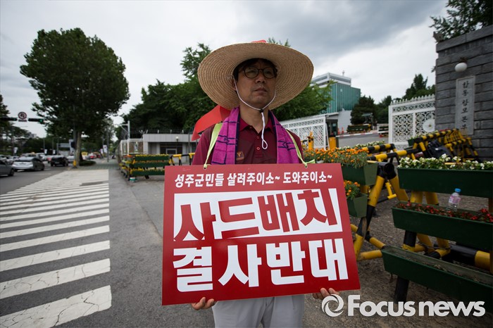 (서울=포커스뉴스) 경북 성주군민이 15일 오후 서울 용산구 국방부 앞에서 사드 성주 배치를 반대하는 1인 시위를 하고 있다.