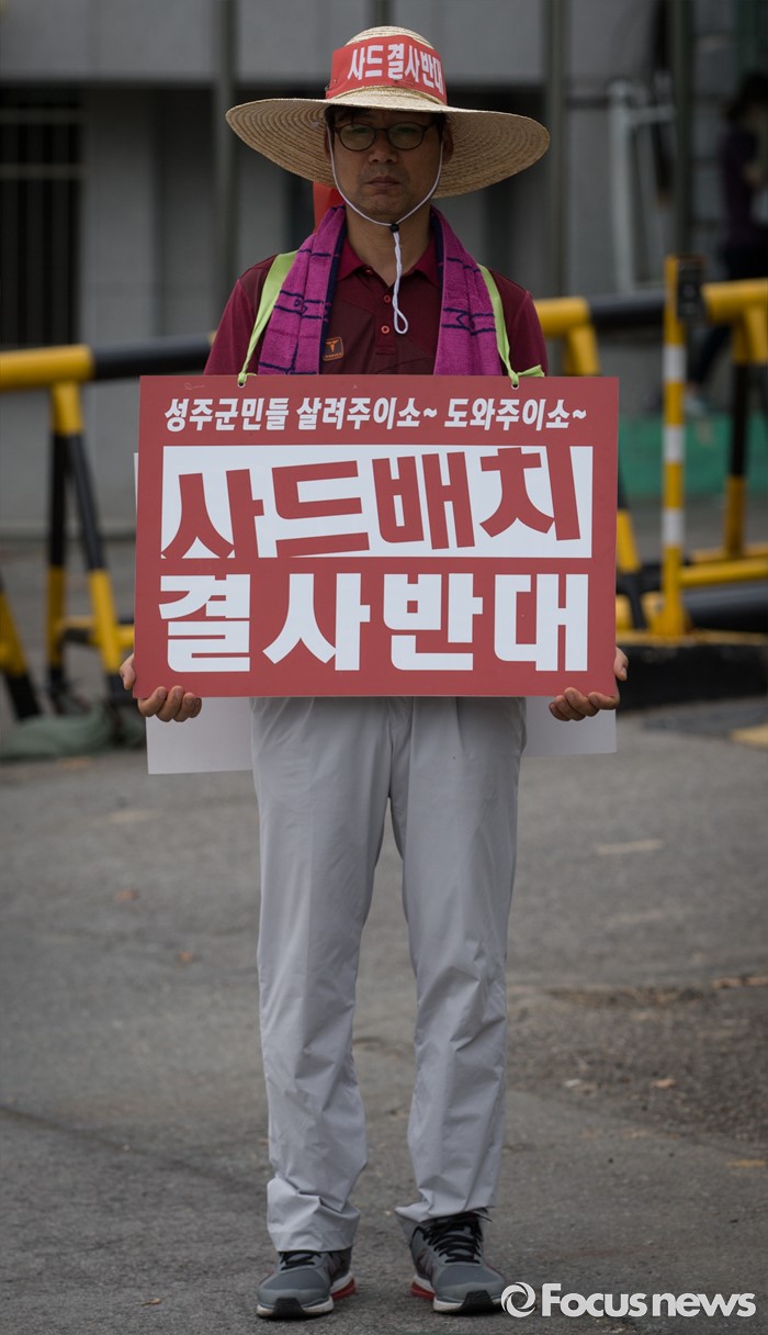 (서울=포커스뉴스) 경북 성주군민이 15일 오후 서울 용산구 국방부 앞에서 사드 성주 배치를 반대하는 1인 시위를 하고 있다.