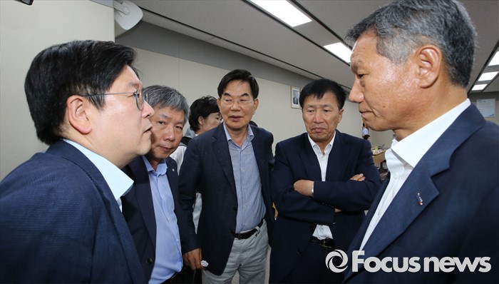 (세종=포커스뉴스) 15일 저녁 세종시 정부세종청사 고용노동부에서 열린 최저임금위원회 제13차 전원회의에서 근로자 위원들이 회의장을 나서자 사용자위원들이 논의를 하고 있다.