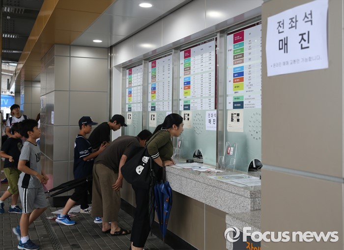 (서울=포커스뉴스) 16일 서울 고척 스카이돔에서 열린 2016 프로야구 올스타 경기에서 전좌석이 매진된 가운데 팬들이 혹여 반환된 표가 없는지 매표소 창구에 문의하고 있다.