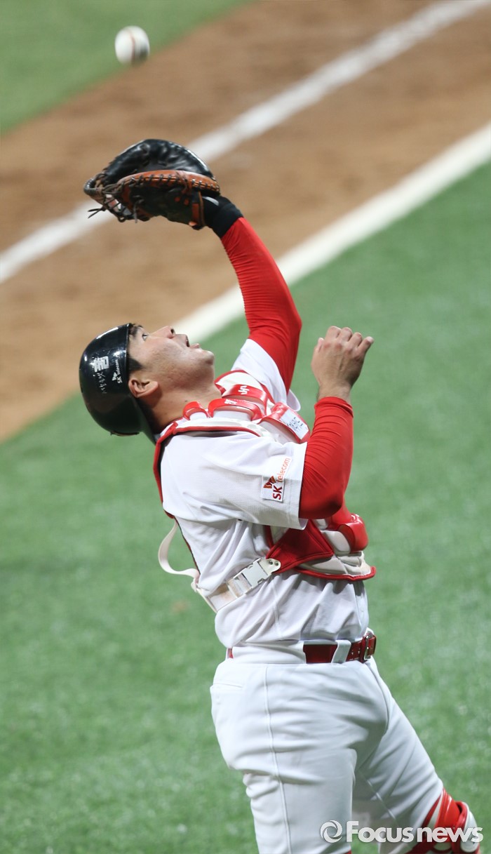 | △ 경기를 끝내는 포수 이재원 |