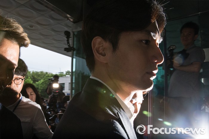 (서울=포커스뉴스) 성폭행 혐의로 피소된 배우 이진욱이 17일 오후 서울 강남구 수서경찰서로 출석하고 있다.