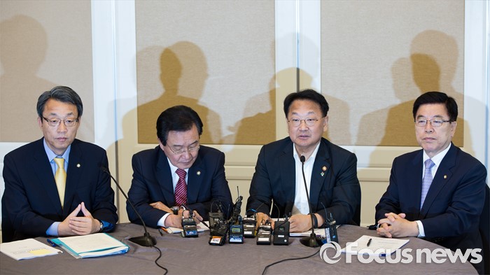 새누리당 김광림·더불어민주당 변재일·국민의당 김성식 정책위의장은 이날 오전 국회에서 유일호 경제부총리와 함께 추가경정예산(추경) 등에 대해 논의한다.