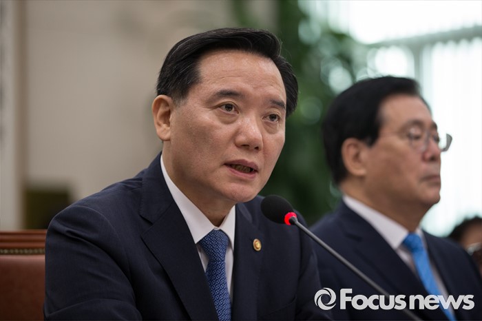 질문에 답하는 김현웅