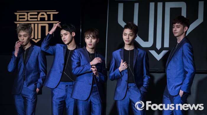 (서울=포커스뉴스) 18일 오후 서울 강남구 삼익아트홀에서 열린 아이돌 그룹 비트윈의 미니앨범 'COME TO ME' 발표 쇼케이스에 참여한 멤버들이 포토타임을 갖고 있다.
