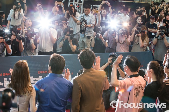 (서울=포커스뉴스) 18일 오후 서울 영등포구 타임스퀘어에서 열린 영화 '부산행' 레드카펫 행사에 참석한 출연 배우들과 감독이 취재진을 향해 포즈를 취하고 있다.