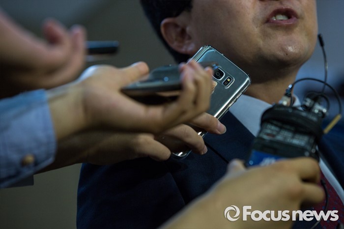 (서울=포커스뉴스) 김용태 새누리당 의원이 19일 오전 서울 여의도 국회에서 윤상현 의원의 공천개입 의혹 관련 입장발표를 마친 뒤 취재진 질문에 답하고 있다.
