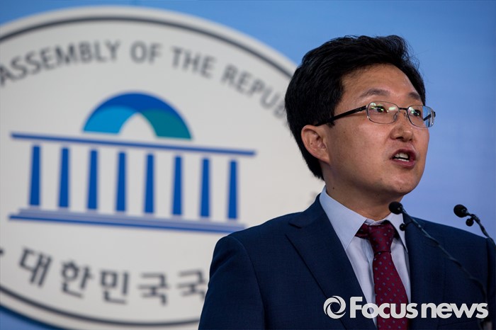 (서울=포커스뉴스) 김용태 새누리당 의원이 19일 오전 서울 여의도 국회에서 윤상현 의원의 공천개입 의혹 관련 입장발표를 하고 있다.