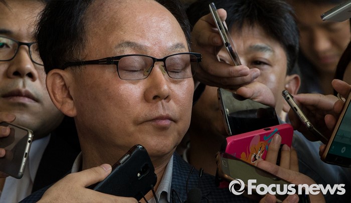 (서울=포커스뉴스) 롯데케미칼 270억원대 소송 사기에 연루된 혐의를 받는 기준 전 롯데물산 사장이 19일 오전 서울중앙지검에 피의자 신분으로 출석, 취재진의 질문에 답하고 있다.