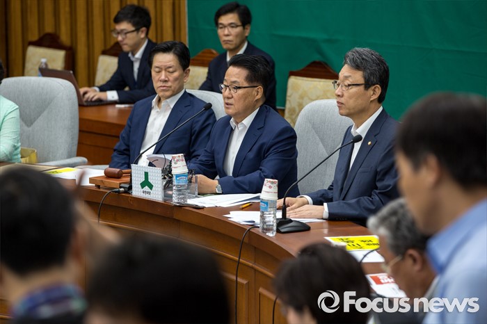 (서울=포커스뉴스) 박지원 국민의당 비상대책위원장과 김성식 정책위의장이 19일 오전 서울 여의도 국회에서 열린 의원총회에 참석해 모두발언 하고 있다.