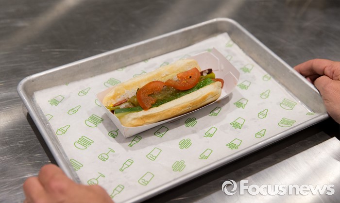 (서울=포커스뉴스) 19일 오전 서울 강남구 쉐이크쉑 강남점에서 열린 미디어 프리젠테이션 행사에서 Shack-cago Dog가 공개되고 있다.