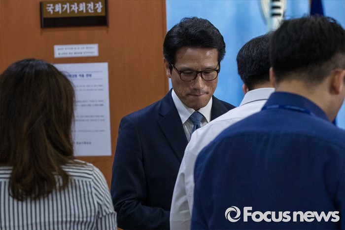 (서울=포커스뉴스) 정병국 새누리당 의원이 19일 오전 서울 여의도 국회에서 윤상현 의원의 공천개입 의혹 관련 입장발표를 마친 뒤 기자회견장을 나서고 있다.