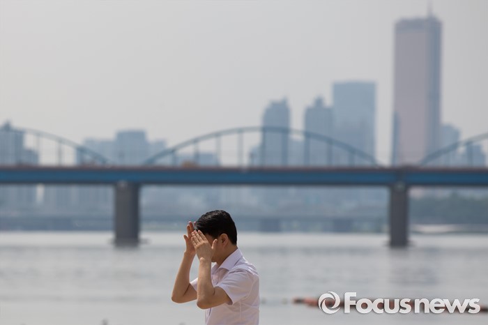 (서울=포커스뉴스) 서울 지역에 폭염주의보가 내린 19일 오후 서울 서초구 반포한강공원 일대에서 한 시민이 걸어가고 있다.