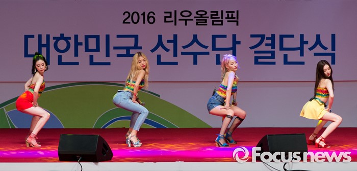 (서울=포커스뉴스) 19일 오후 서울 송파구 올림픽공원 올림픽홀에서 열린 2016 리우올림픽 대한민국 선수단 결단식에서 걸그룹 원더걸스가 축하공연을 하고 있다.