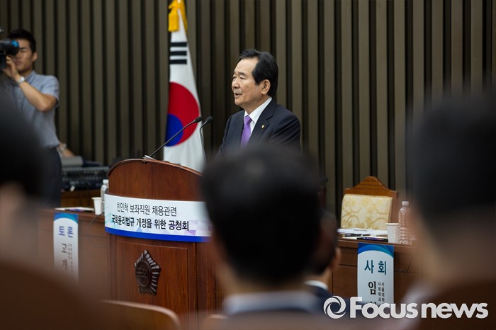 (서울=포커스뉴스) 정세균 국회의장이 19일 오후 서울 여의도 국회에서 열린 '친인척 보좌직원 채용 국회윤리법규 개정 위한 공청회'에 참석해 인사말 하고 있다.
