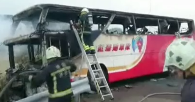 대만서 달리던 고속버스 화재 발생…중국인 관광객 등 26명 전원 사망