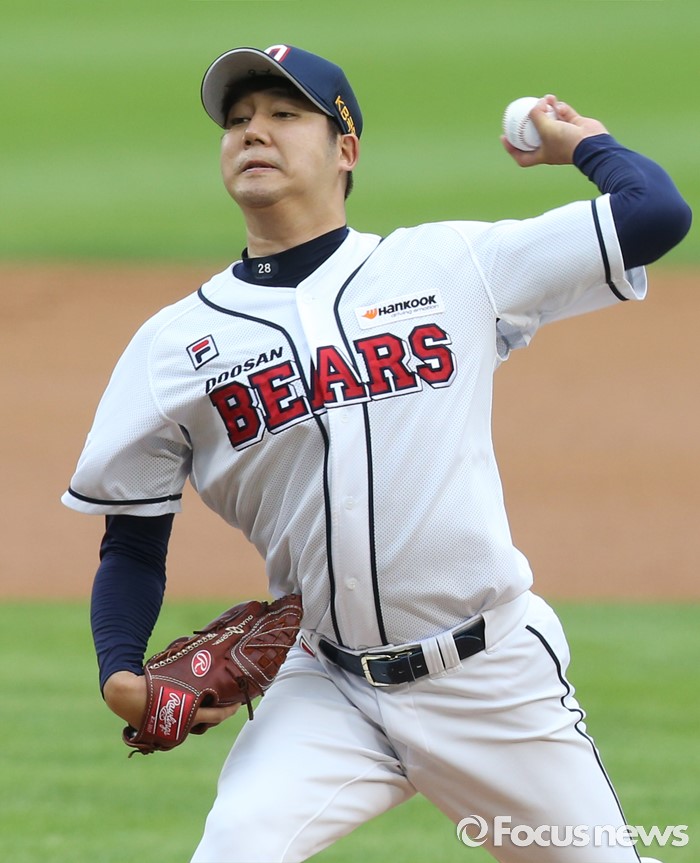 (서울=포커스뉴스) 19일 서울 잠실구장에서 열린 2016 프로야구 삼성-두산 경기에서 1회초 두산 선발투수 장원준이 투구하고 있다.