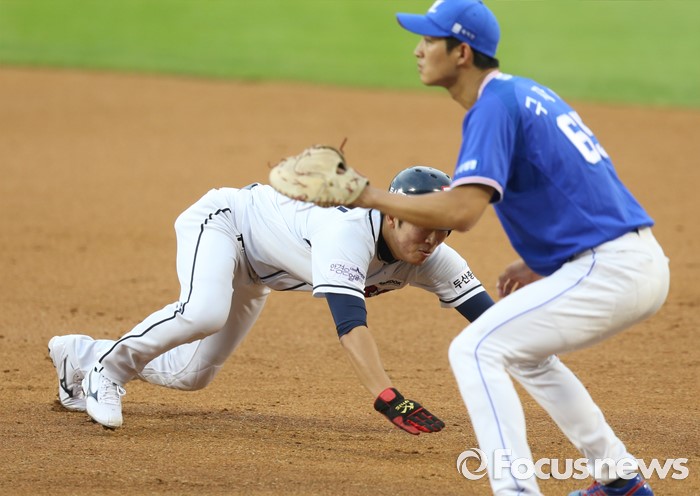 견제구에 귀루하는 두산 허경민